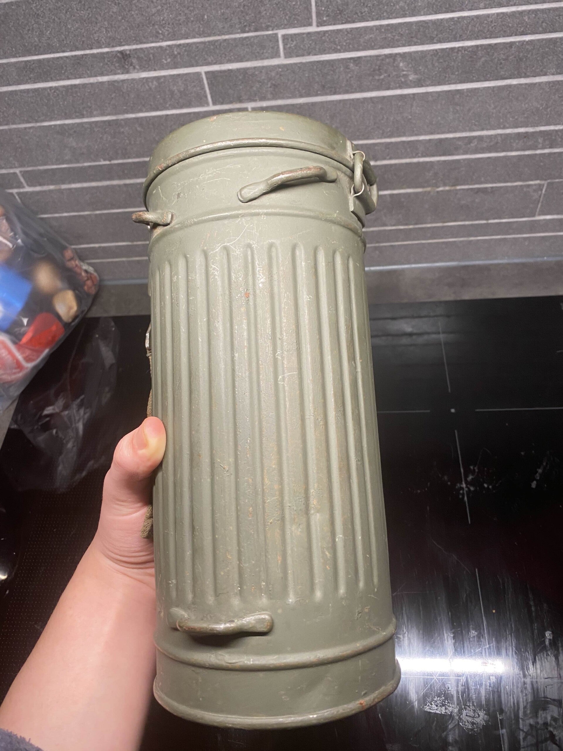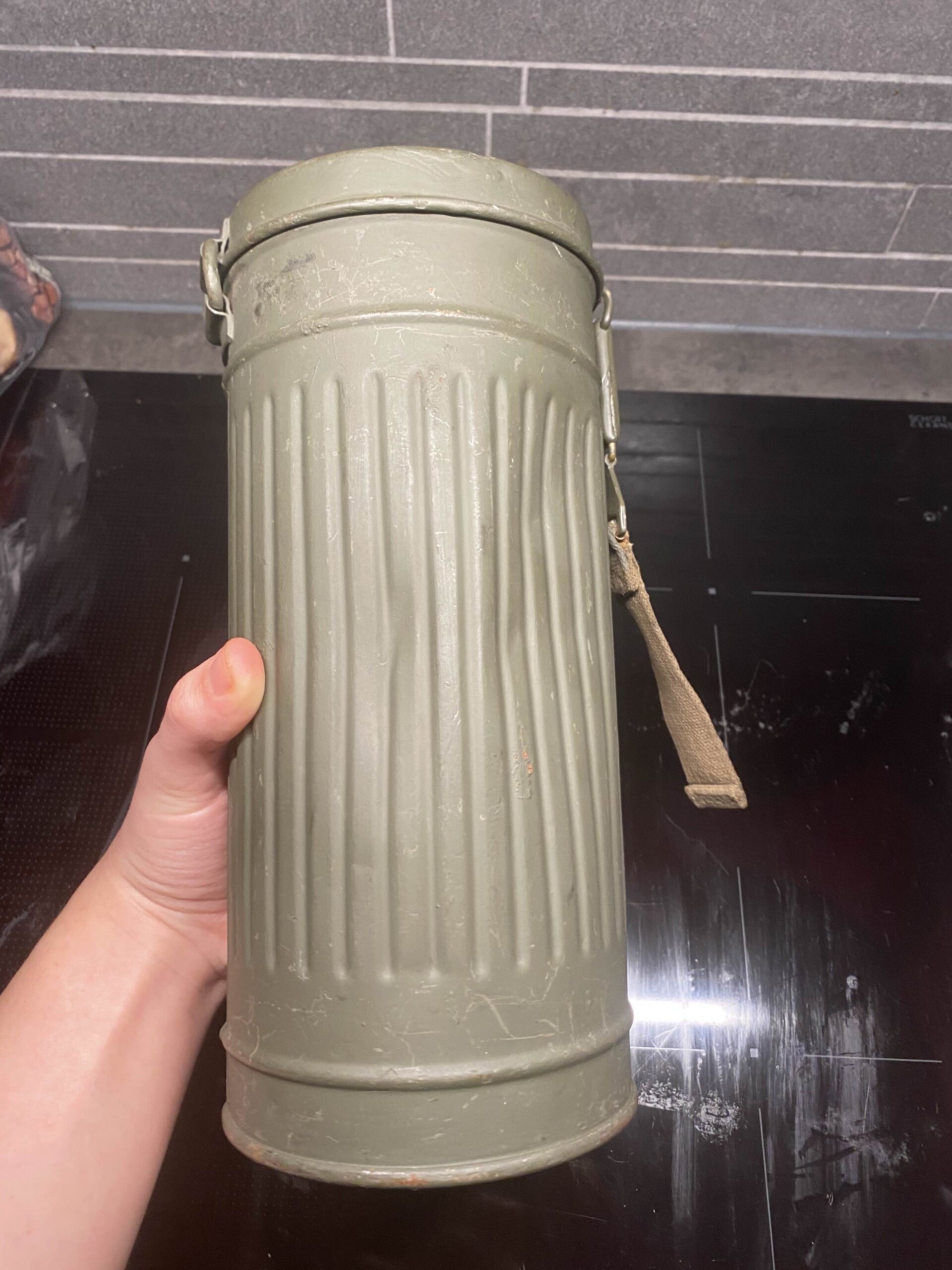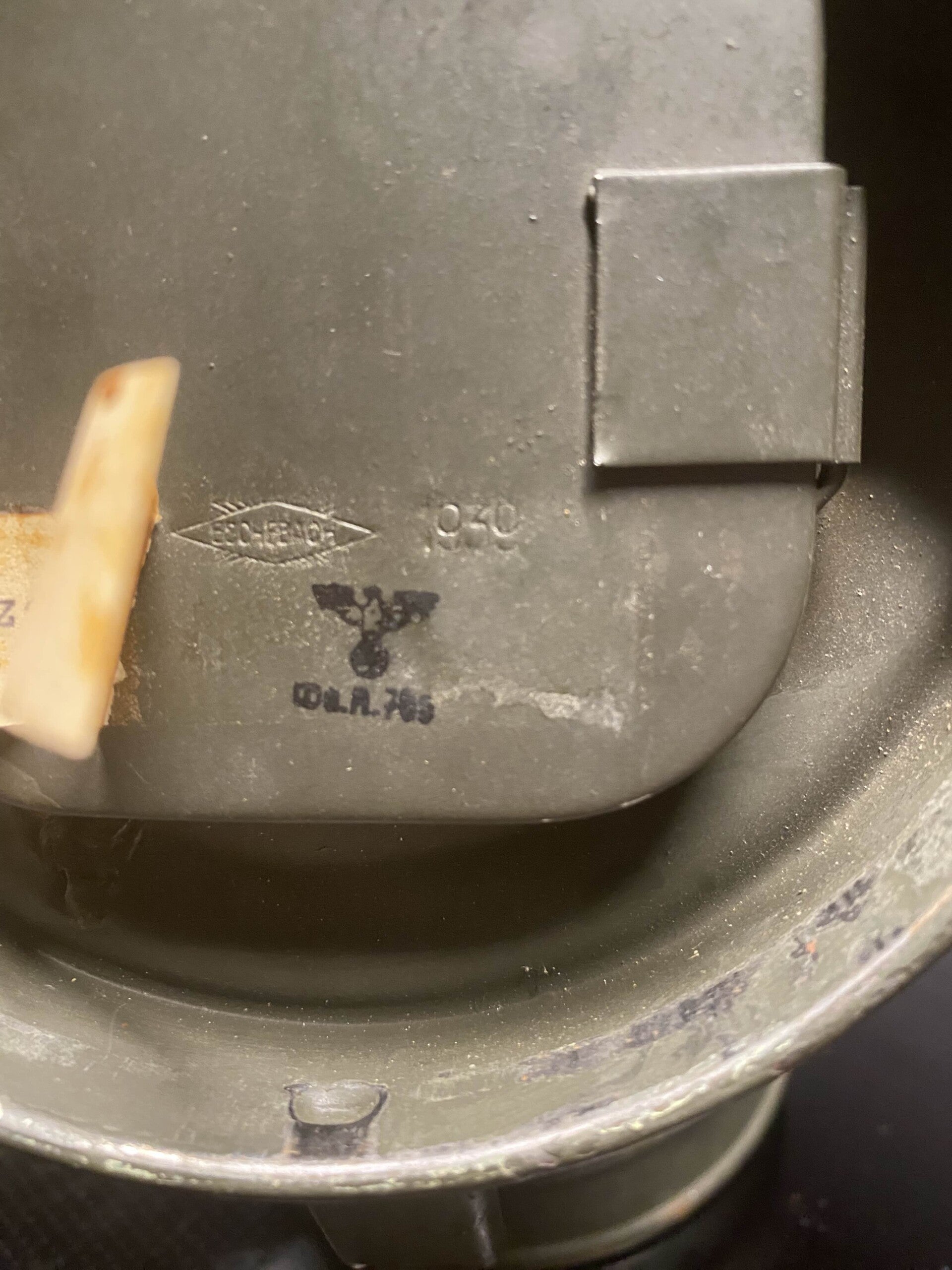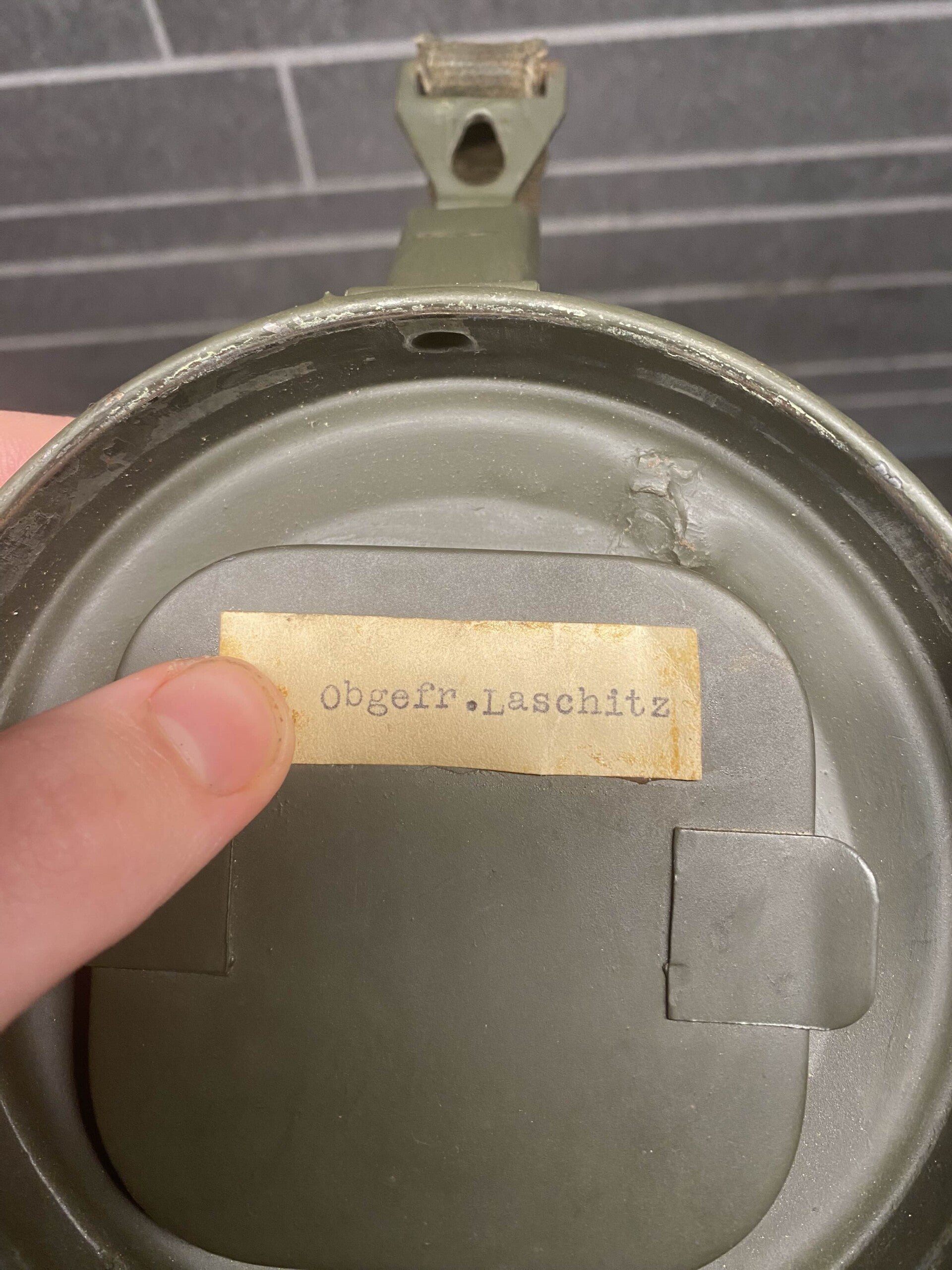 Very nice tall german gasmask named to an obergefreiter "Laschitz" its in MINT condition