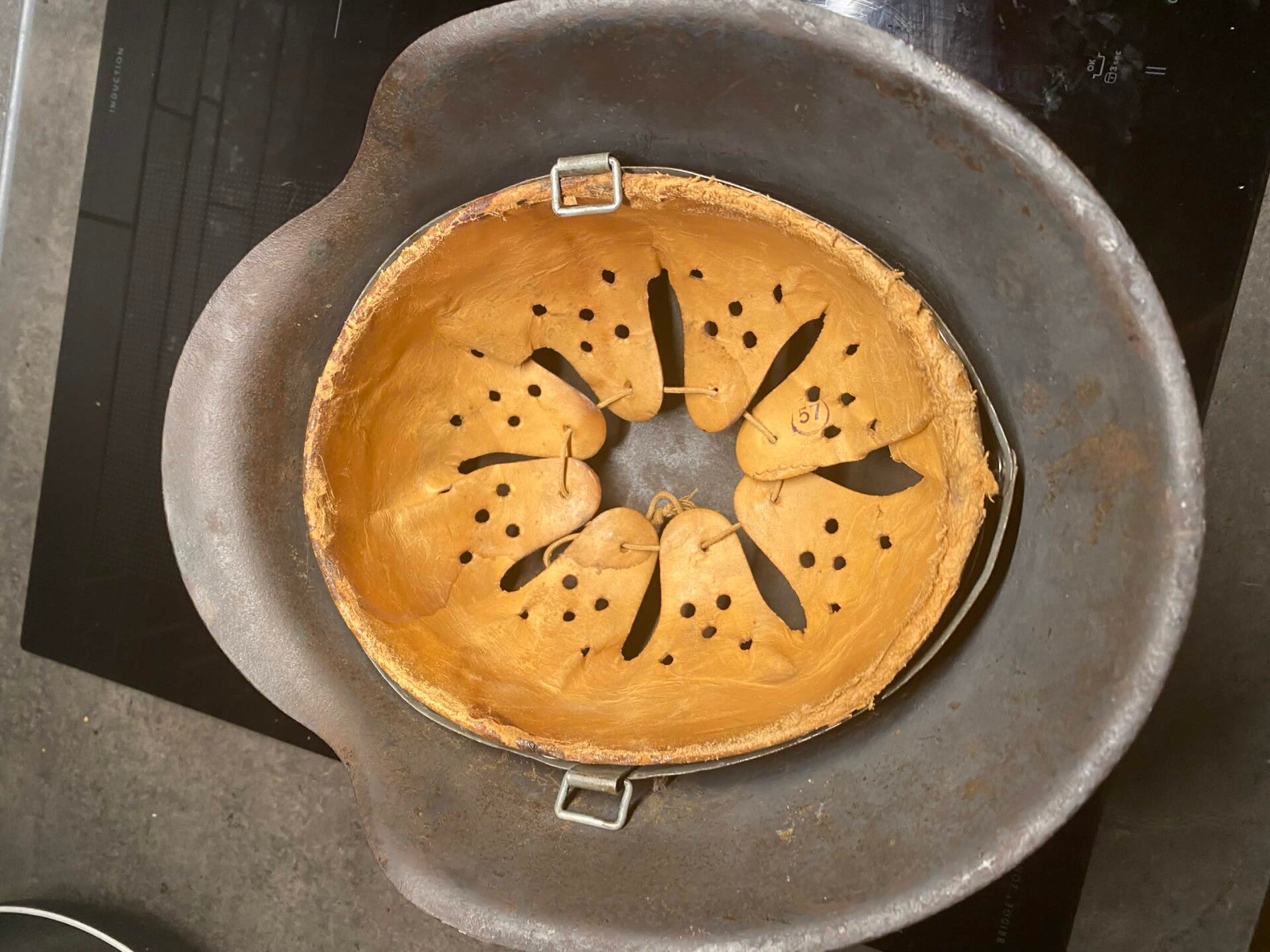 Very nice M42 Luftwaffe helmet ET66 SD. Has been overpainted post war but the post war paint has been removed. The liner has also been replaced but it is original tho.