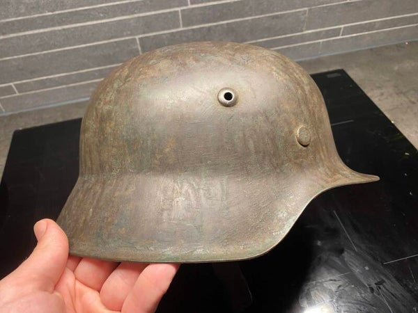 Very nice M42 helmet with camo and is EX winter camo. Hard to make out but its HKP66 stamped. The leather has sadly been treated but its soft and has a chinstrap wich is also soft.