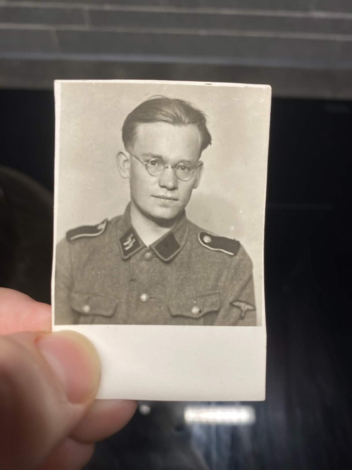 Waffen SS Pass photo for a latvian/Estonian volunteer. There used to be better visibility on text on the back but you can still make out some of the text wich is Latvian or Estonian